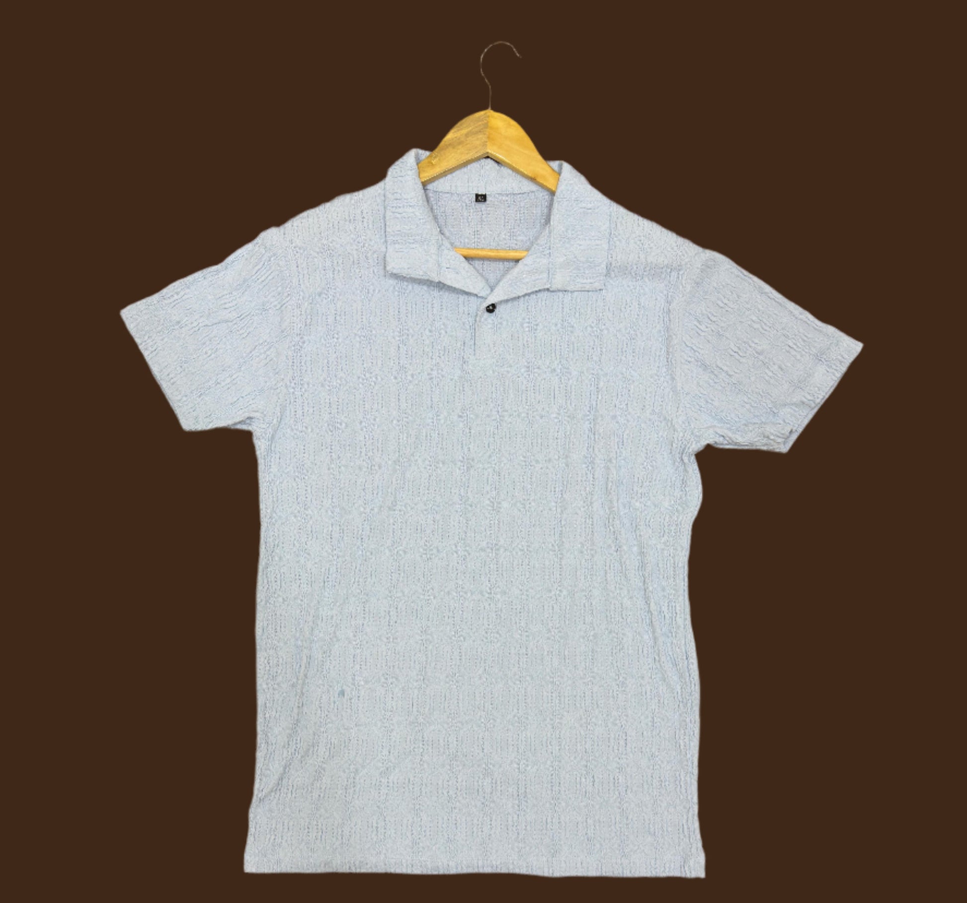 Men’s Textured Popcorn Knit Polo Sky Blue Shirt | Casual Crinkle Style