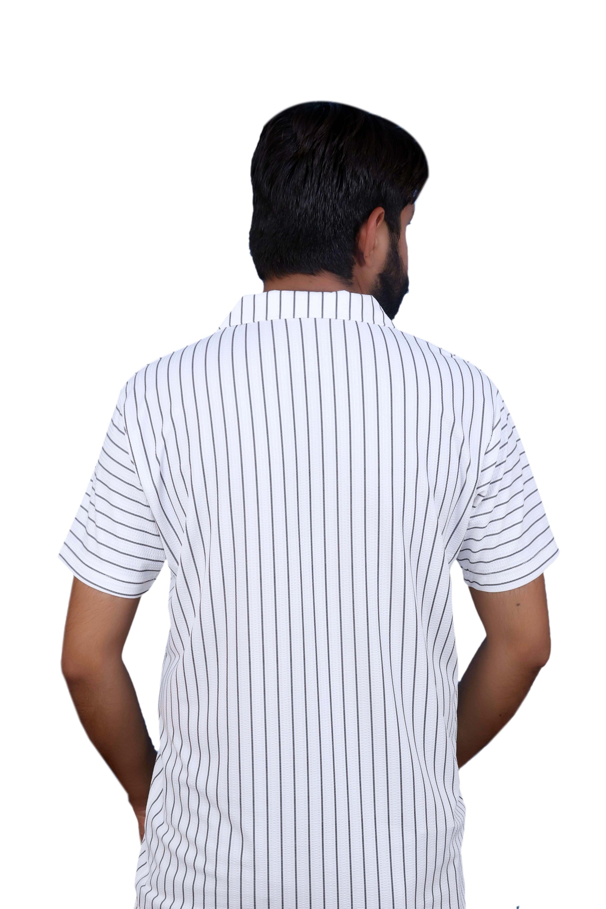 Elevate your casual style with the Verano Striped Polo Tee – where comfort meets minimal elegance. Featuring a relaxed fit with a smart open-collar neckline, this short-sleeve tee is perfect for warm days or layering under a jacket. Designed with subtle vertical stripes, it gives a taller, leaner silhouette. A wardrobe essential for those who appreciate timeless patterns and breathable fabrics.